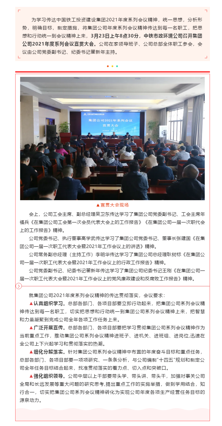 迅速行動!中鐵市政環(huán)境公司學習傳達集團公司2021年度系列會議精神