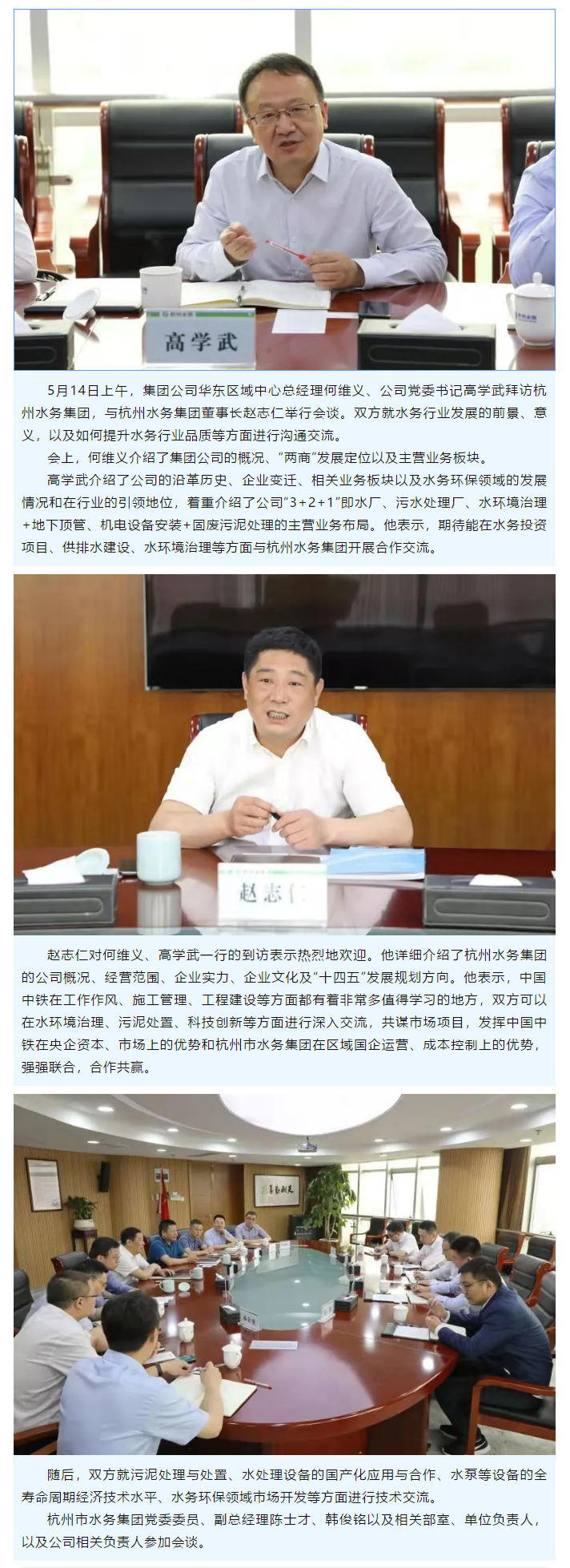 集團公司華東區(qū)域中心總經(jīng)理何維義、公司黨委書記高學(xué)武拜訪杭州水務(wù)集團