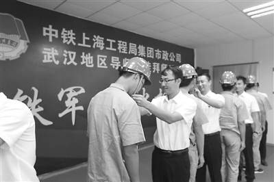 8月31日上午10時,在中鐵上海局市政公司武漢地鐵蔡甸線七標(biāo)項(xiàng)目部“市政鐵軍 薪火相傳”拜師活動現(xiàn)場,13名新入職大學(xué)生與他們的專業(yè)指導(dǎo)師父和職業(yè)規(guī)劃導(dǎo)師共同簽訂師徒合同,正式拉開了工地“導(dǎo)師帶徒”推行雙導(dǎo)師制的序幕。拜師現(xiàn)場,師父還送給徒弟工地“文房四寶”——卷尺、鋼筆、計(jì)算器、學(xué)習(xí)計(jì)劃簿。劉鑫 李穎 苗武 攝